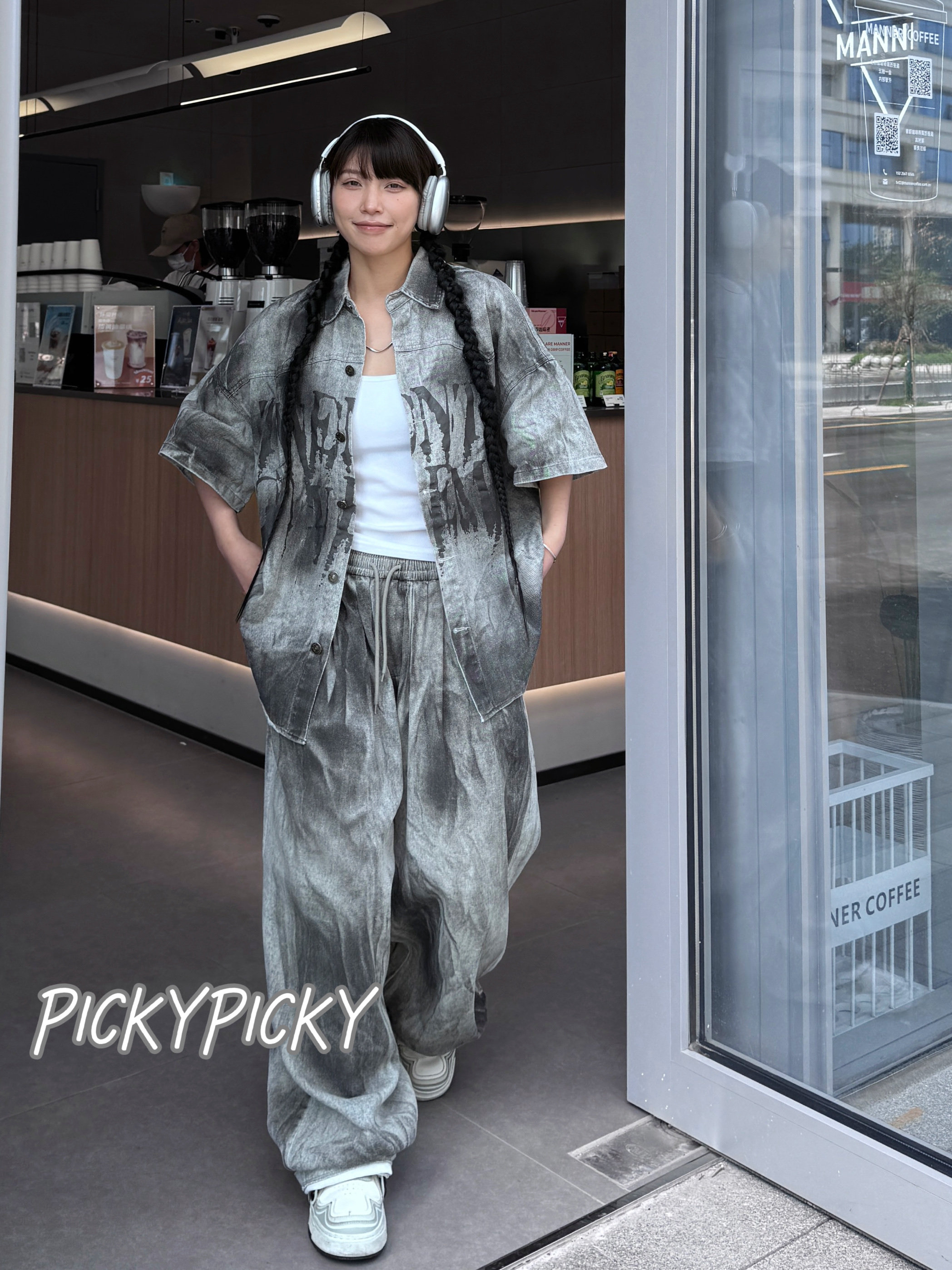 pickypicky Hand-Painted Graffiti Denim Set: The Ultimate Vintage Wash Streetwear