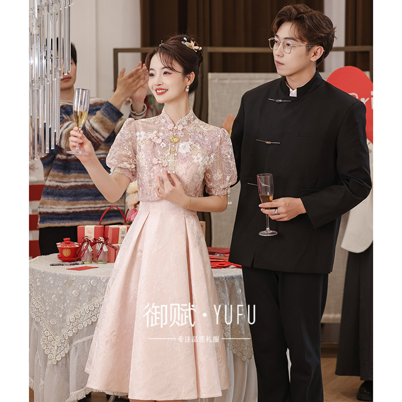 Dreamy Pink Cheongsam Toast Dress for Your 2025 Wedding
