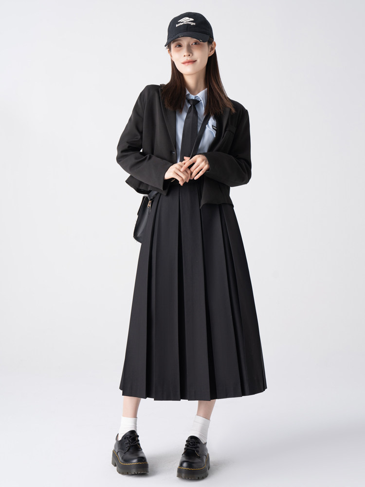For a classic 学院风 (preppy style) look, pair this 百褶裙长款半身裙 with a crisp white button-down or a fitted knit polo and loafers. If you prefer a more modern, casual vibe, opt for a cropped graphic tee and chunky sneakers to play with proportions. During the peak of summer, a simple rib-knit tank top tucked into the high waistband will highlight the slimming effect of the A-line cut.
