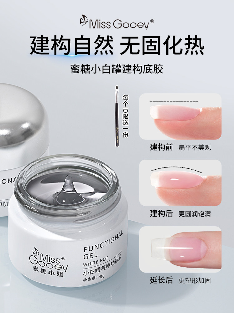 Elevate your manicure artistry with the Miss Gooey "White Pot" series, a professional-grade Japanese-style functional gel designed for high-end salon results. This versatile 4-in-1 formula is engineered to transform flat, thin, or brittle nails into perfectly sculpted, high-shine masterpieces. Whether you are looking to create a natural-looking apex, extend the nail length, or reinforce the natural nail plate, this multi-purpose gel provides the structural integrity and crystal-clear finish required for sophisticated nail architecture.