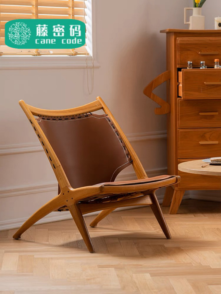 Elevate your home sanctuary with the Cane Code Nordic Lounge Chair. This designer piece blends the raw beauty of natural elm wood with the sophisticated texture of saddle leather, creating a "light luxury" aesthetic that fits perfectly in small apartments, cozy balconies, or modern living rooms. Its low-profile silhouette and clean lines embody a minimalist lifestyle, offering a "gentle and soft" atmosphere that complements any contemporary interior.