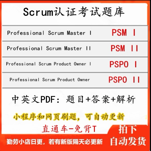 Comprehensive Scrum Master & Product Owner Exam Prep Question Banks (PSM I, PSM II, PSPO I, PSPO II)