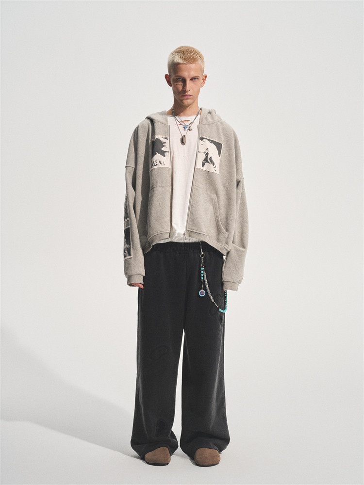 Bastard Punk Print Applique Washed Zip Hoodie – 2024 Autumn/Winter Collection