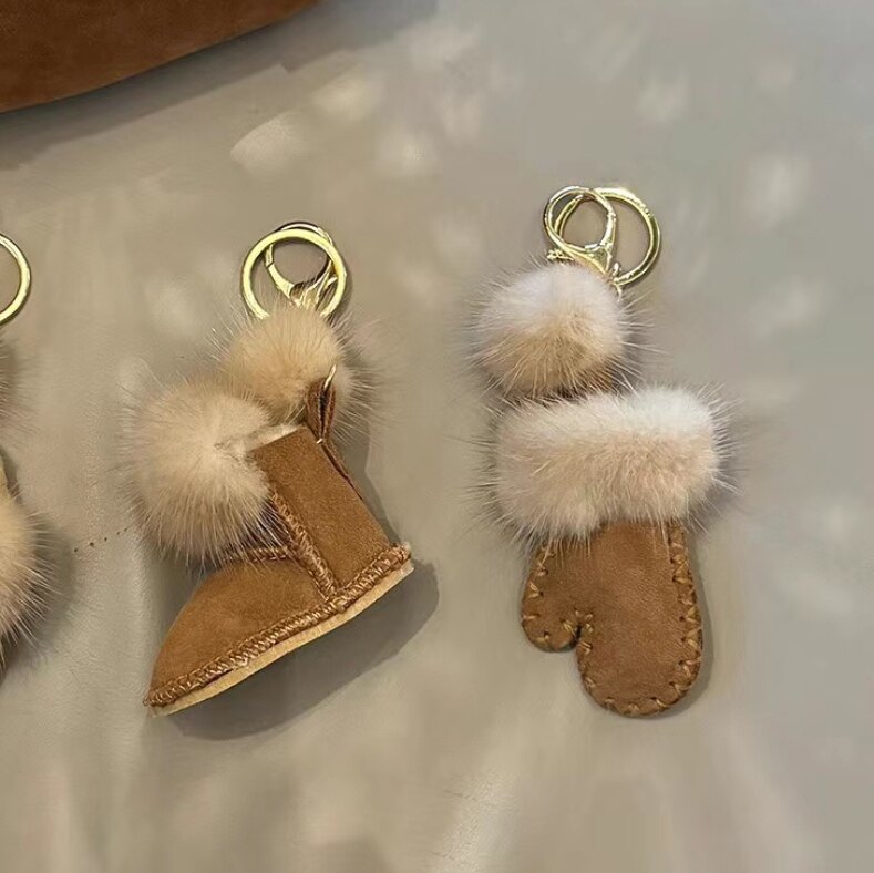 Cozy Chic Woolen Glove & Boot Bag Charm with Premium Mink Fur Accent