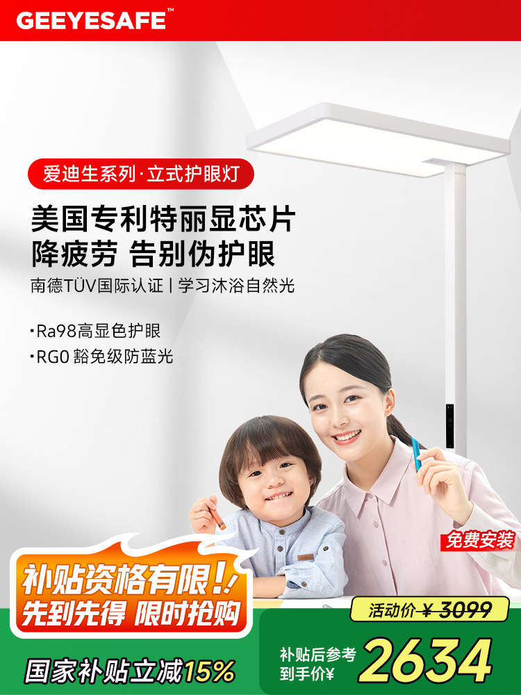- Placement: Position the GEEYESAFE (护眼落地灯) to the side of the desk. Its high-clearance design means it provides total coverage without cluttering the workspace.