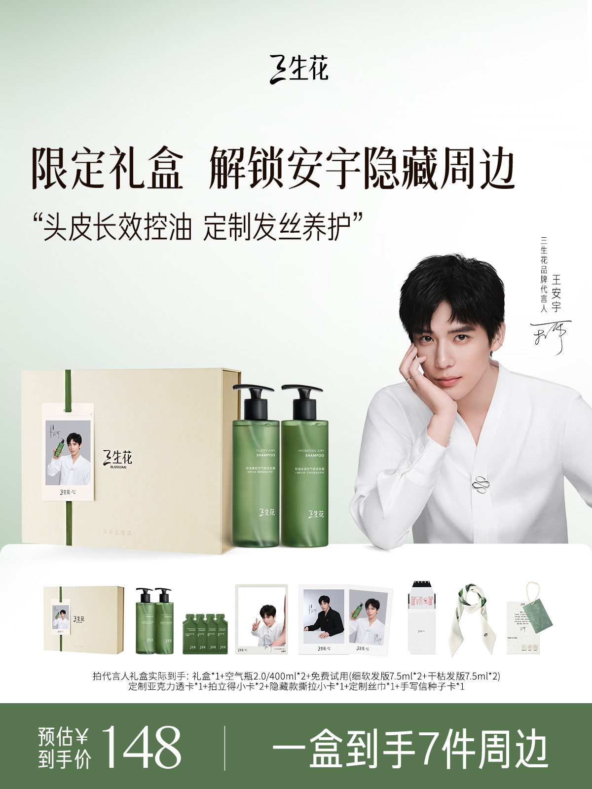 Are you tired of your hair looking flat and greasy just hours after washing? It’s time to meet your new 油头救星 (Oily Hair Savior). In collaboration with the charismatic Wang Anyu, we bring you the 三生花空气瓶2.0 (Sanshenghua Air Bottle 2.0)—a revolutionary hair care experience designed to give you that "just-left-the-salon" volume that lasts for days. This 王安宇专属礼盒 (Wang Anyu Exclusive Gift Box) is more than just a shampoo set; it’s a curated collection for fans who want to achieve the same effortless, airy look as their favorite star.