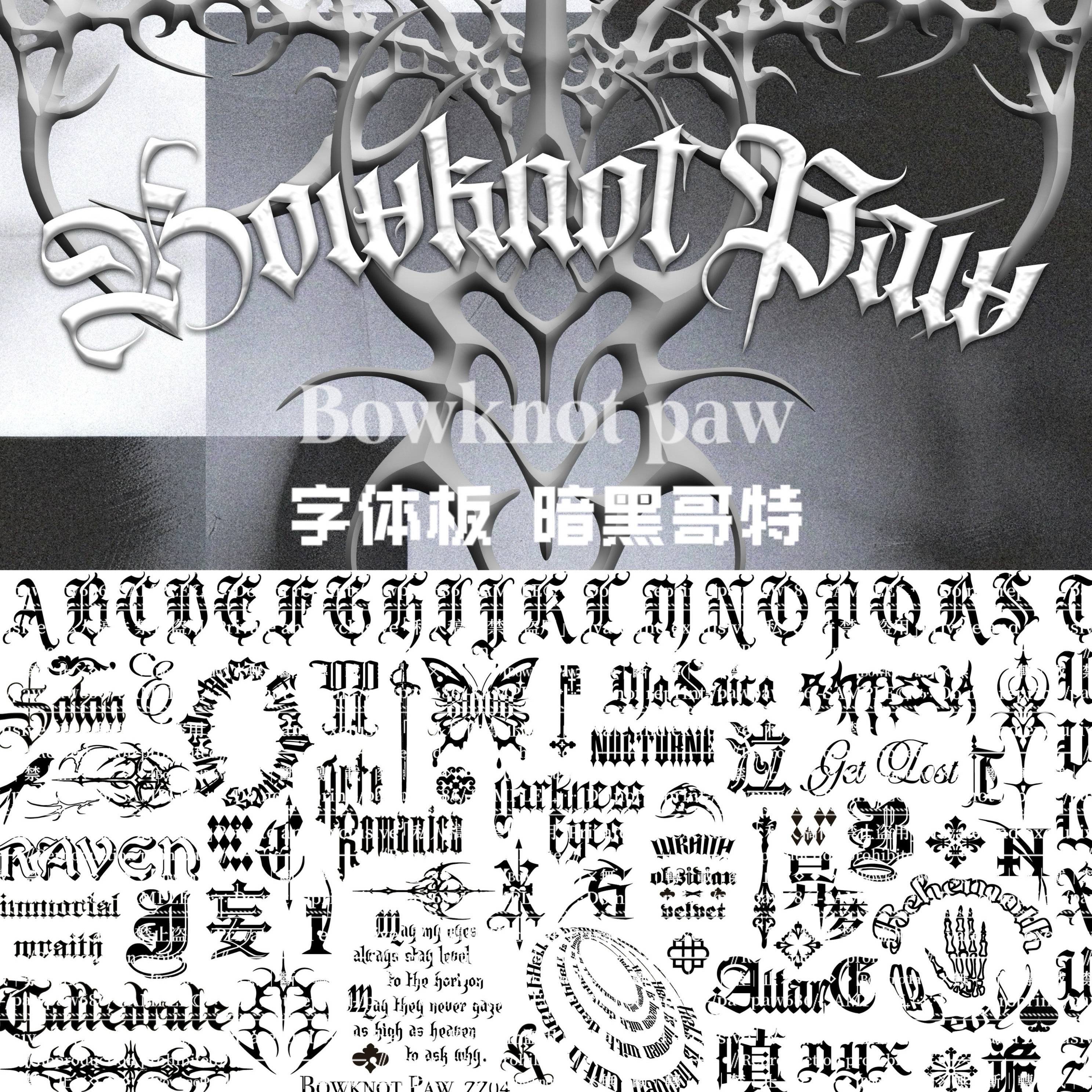 - Design Categories: Gothic Typography, Skeletal/Bone Motifs, Abstract Textures, and Linear Patterns.